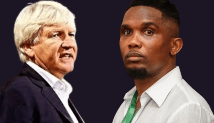 Après une vive altercation entre le patron de la Fédération Camerounaise de Football (FECAFOOT) Samuel Eto’o Fils et le sélectionneur Marc Brys une réunion d’urgence a eu lieu et l’exécutif du sport roi au Cameroun a mis fin provisoirement aux fonctions du belge Marc Brys et tout son staff. Un autre staff est mis en place pour assumer l’intérim en attendant une fin au feuilleton qui a cours entre la fédération et le ministère en charge des sports du pays.