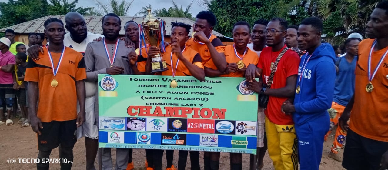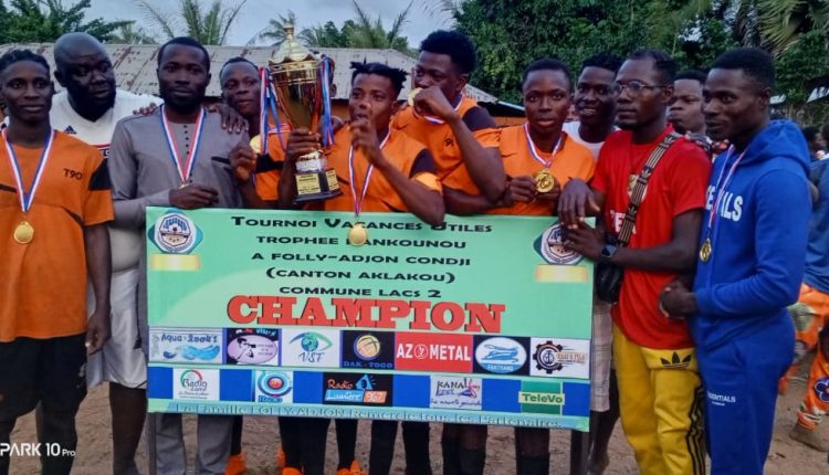Grand Baobab FC est sacré champion de la première édition du tournoi Vacances utiles trophée Hankounou qui s’est déroulée à Folly Adjon Condji. Il a dominé Toffa FC aux tirs au but 1-0 après le nul de 0-0 à la fin du temps réglementaire. C’était ce samedi 31 août 2024 à Aklakou dans la commune Lacs 2. En prélude à cette finale, les dames Amazones Folly-Adjon du village ont perdu devant celles de Lomé 1-0.